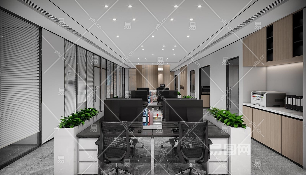 现代公共办公室3D模型下载