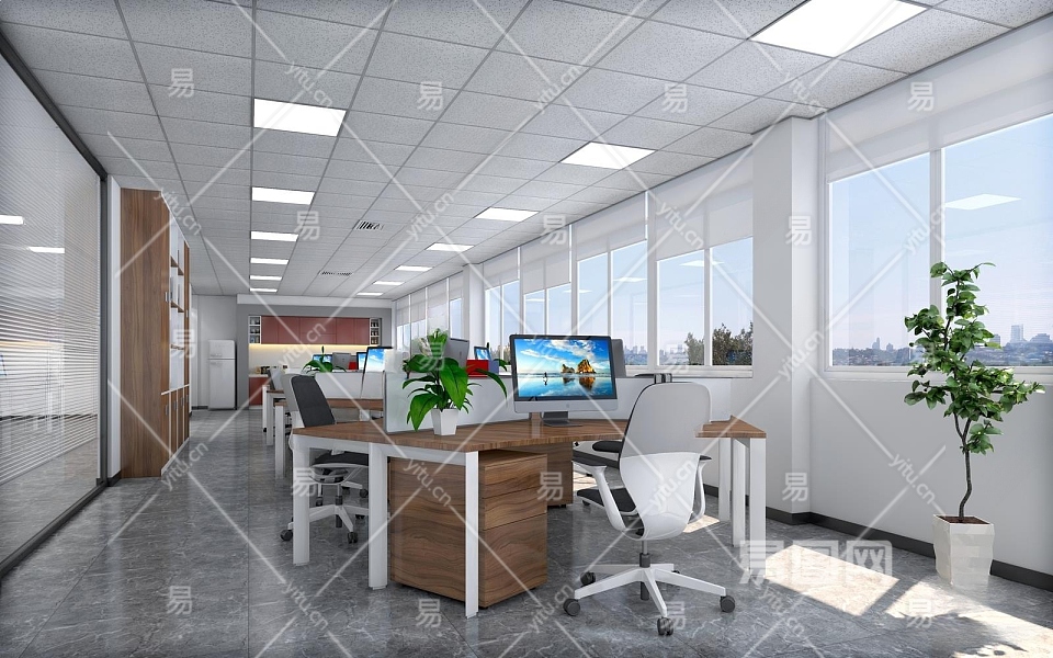 现代公共办公室3D模型下载