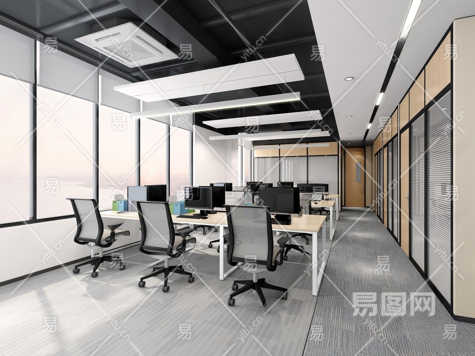 现代公共办公室3D模型下载