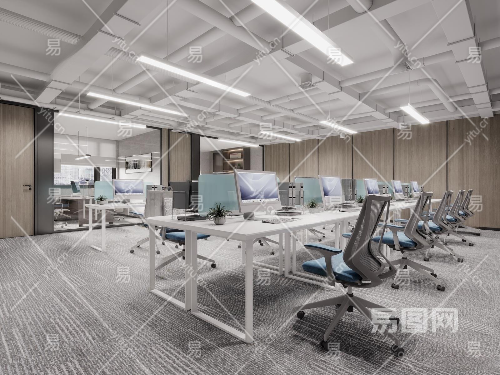 现代公共办公室3D模型下载