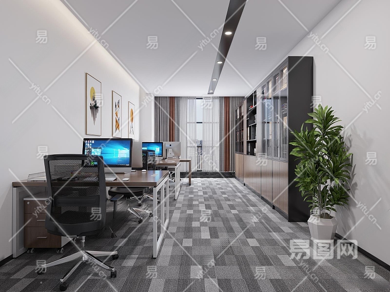 现代公共办公室3D模型下载