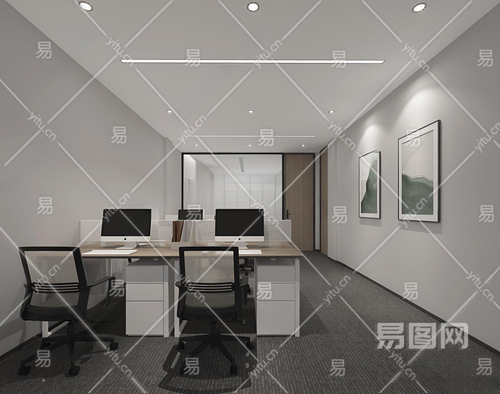 现代公共办公室3D模型下载