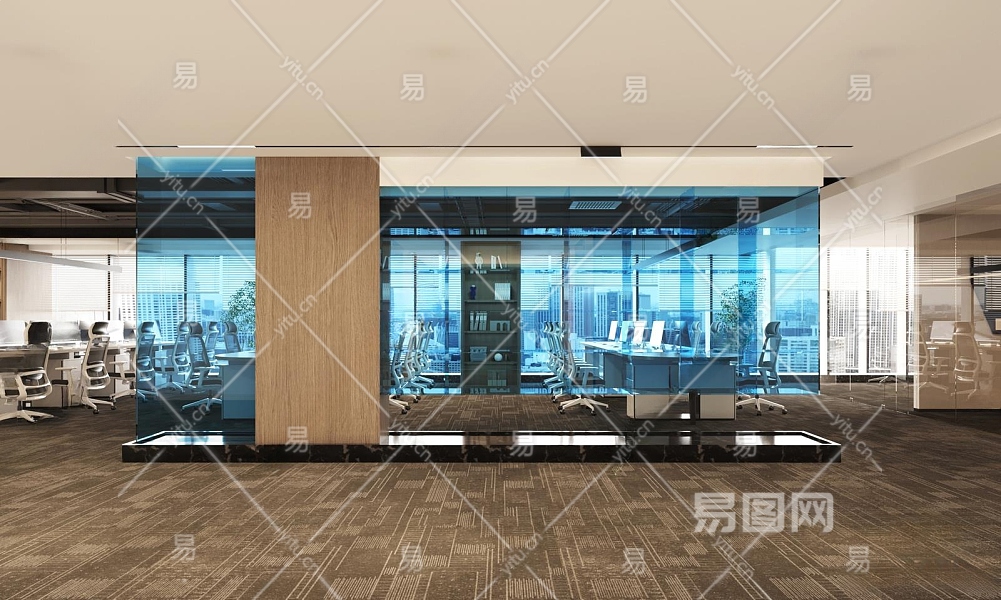 现代公共办公室3D模型下载