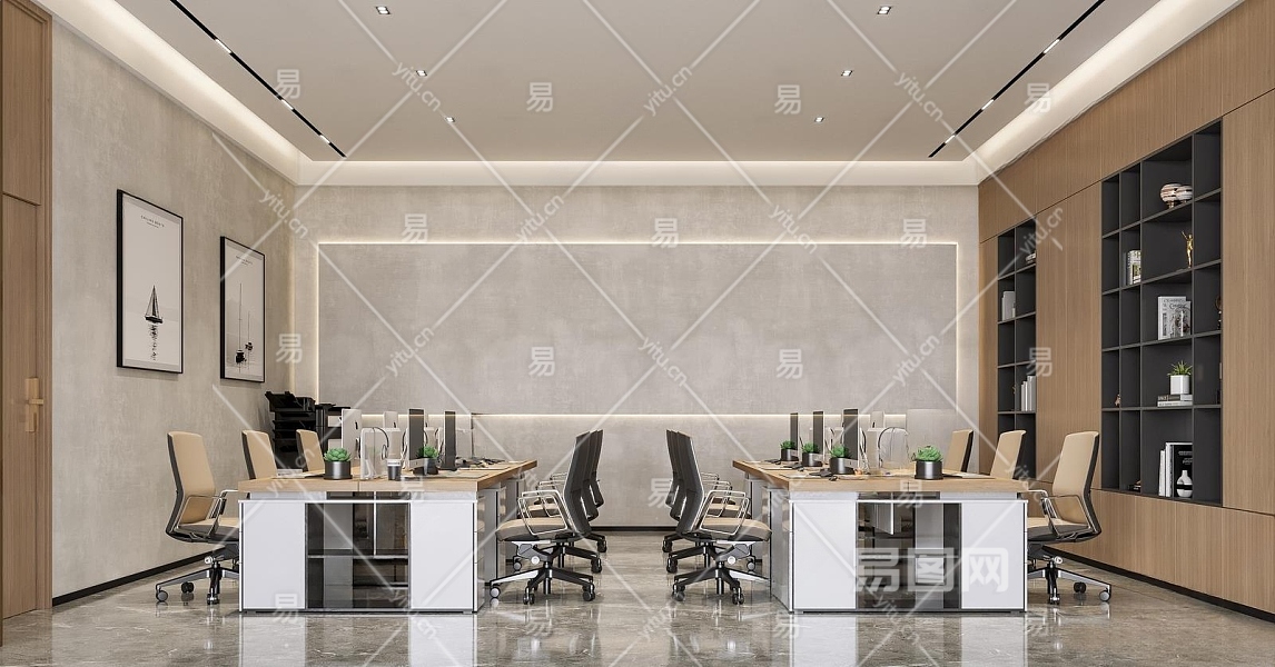 现代公共办公室3D模型下载