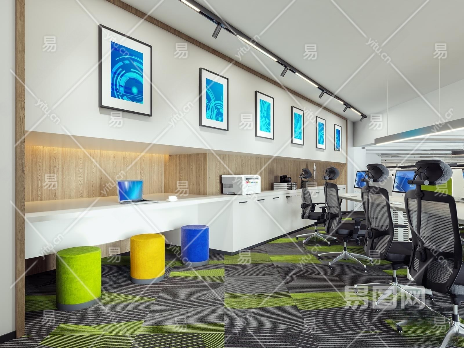 现代开放办公室3D模型下载
