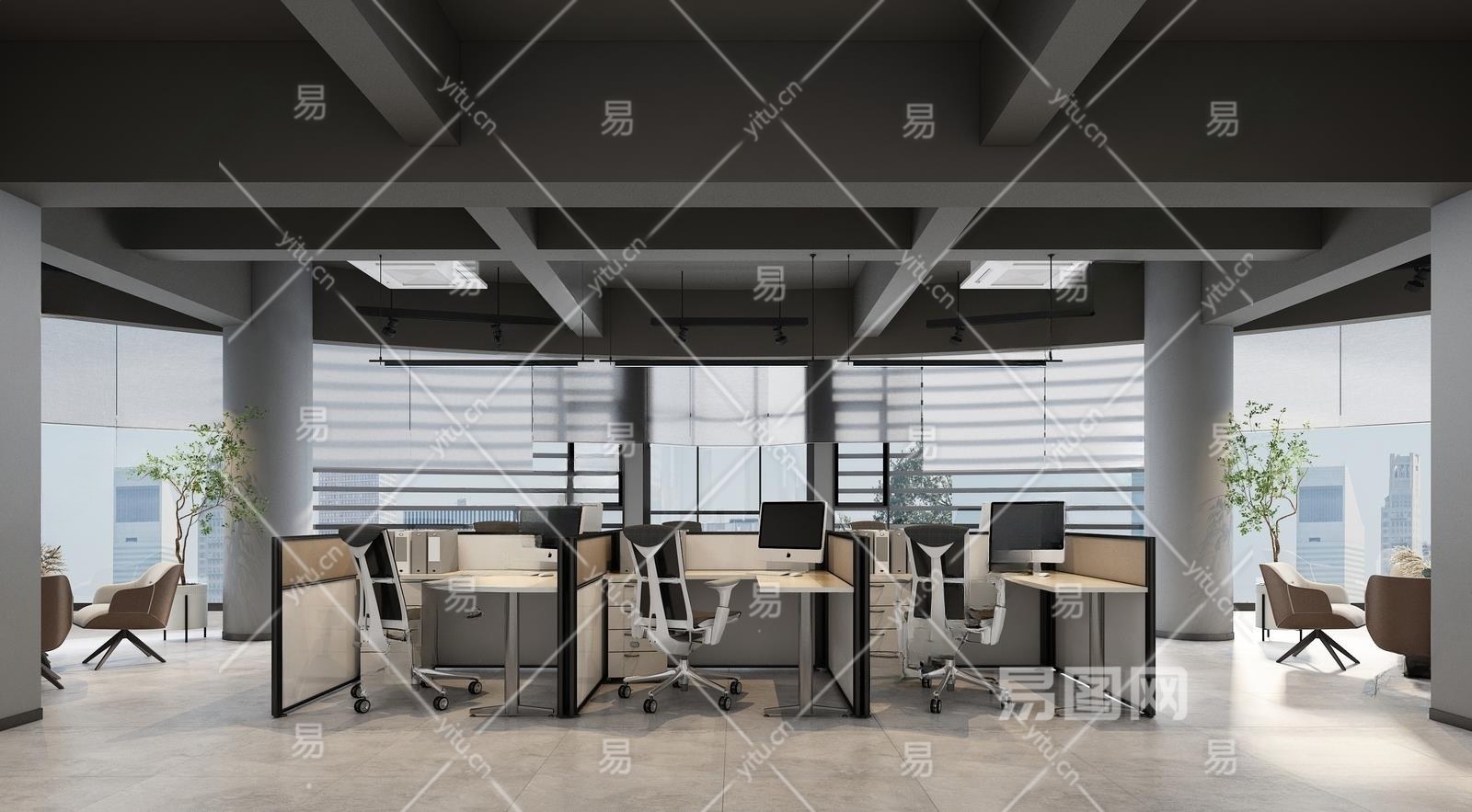 现代公共办公室3D模型下载