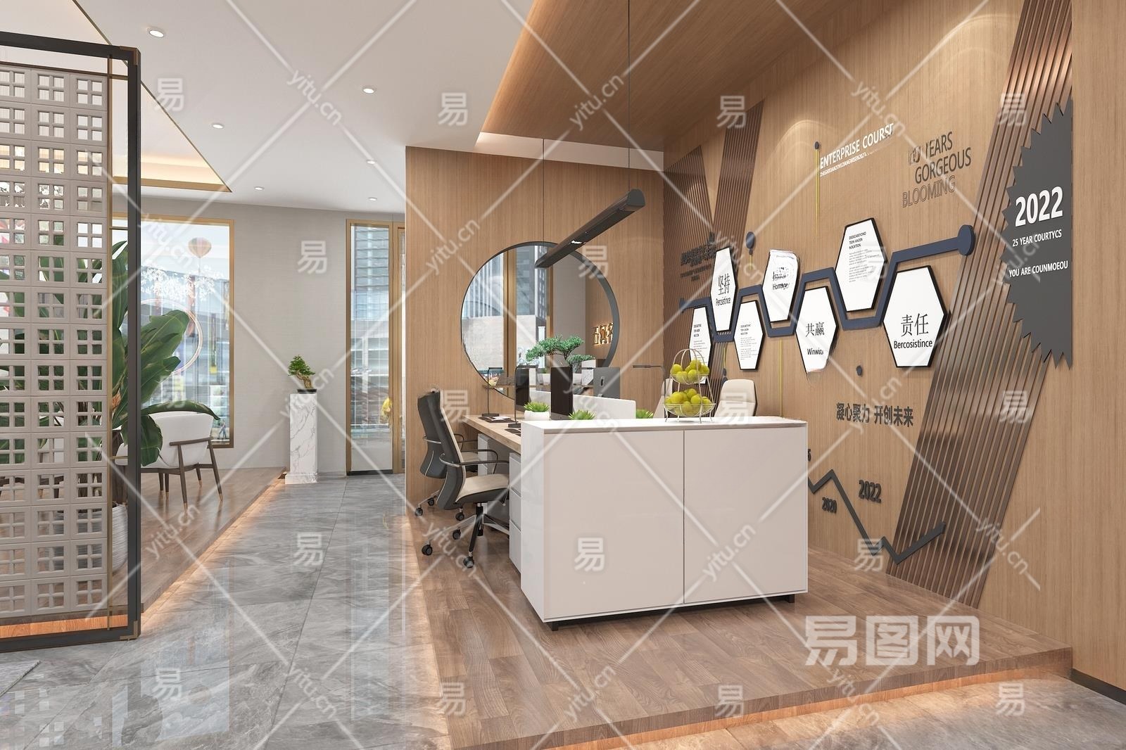 现代公共办公室3D模型下载