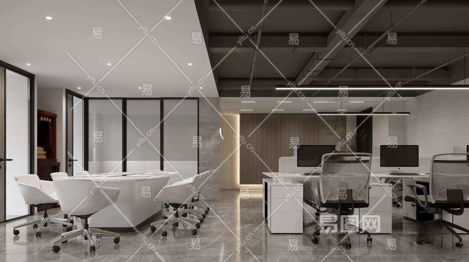 现代办公室3D模型下载