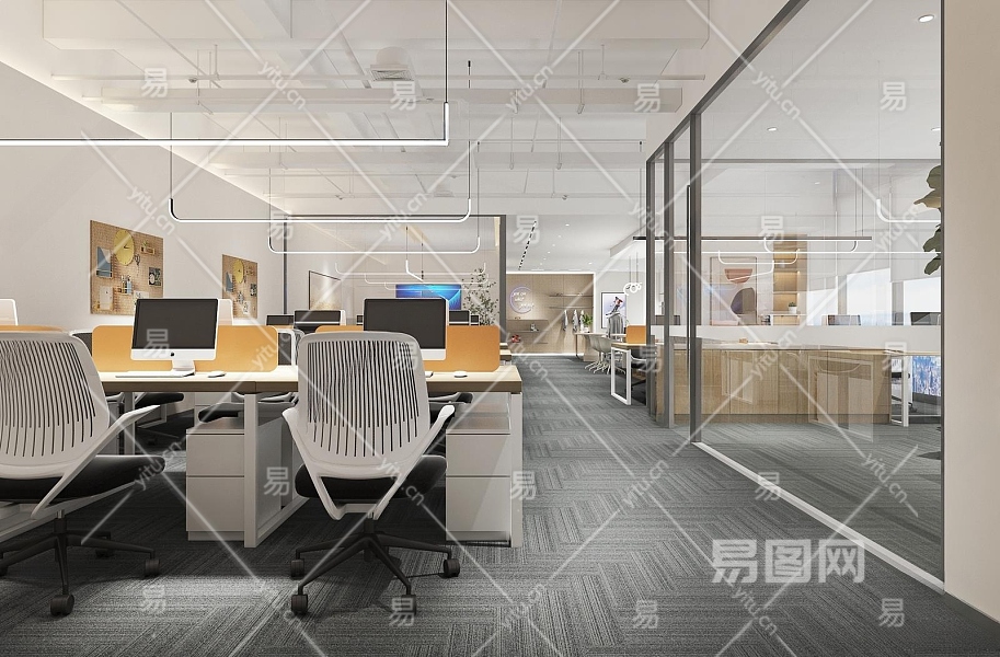 现代公共办公室3D模型下载