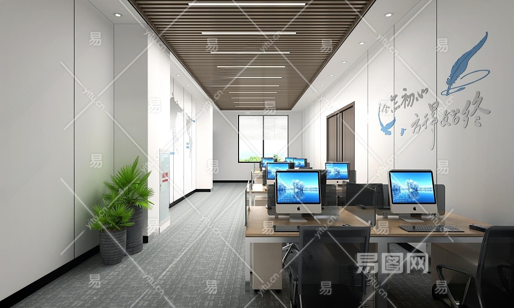 现代公共办公室3D模型下载