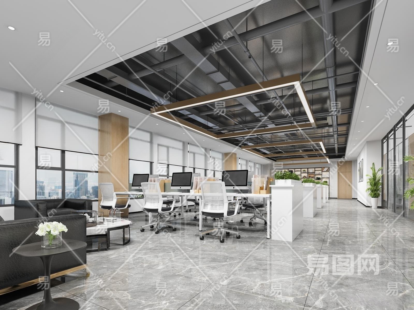 现代公共办公室3D模型下载