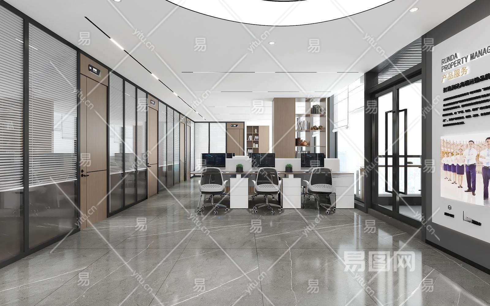 现代公共办公区3D模型下载