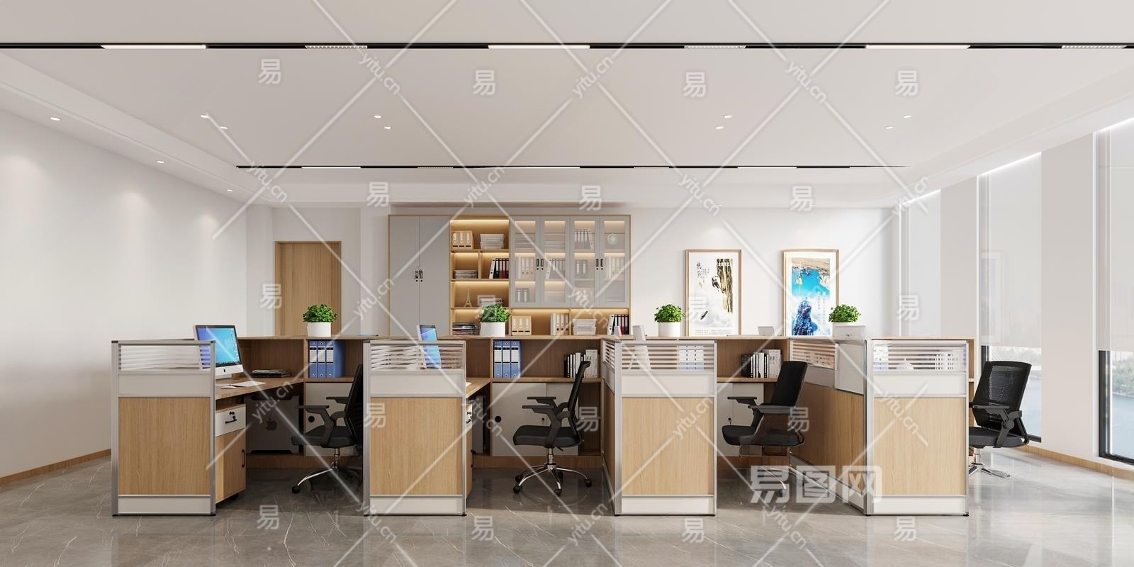 现代公共办公室3D模型下载