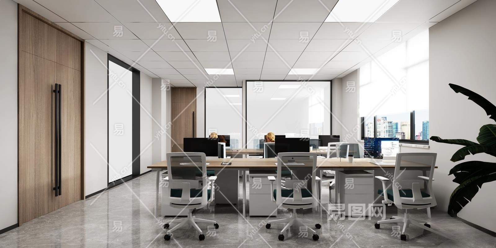现代公共办公室3D模型下载