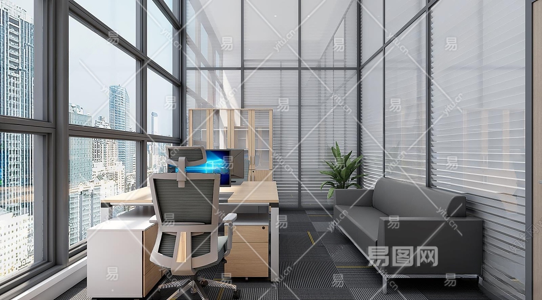 现代经理办公室3D模型下载