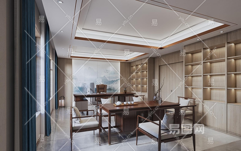 新中式经理办公室3D模型下载