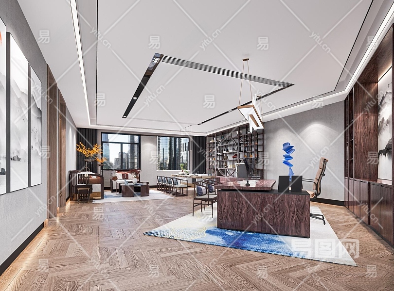 新中式经理办公室3D模型下载
