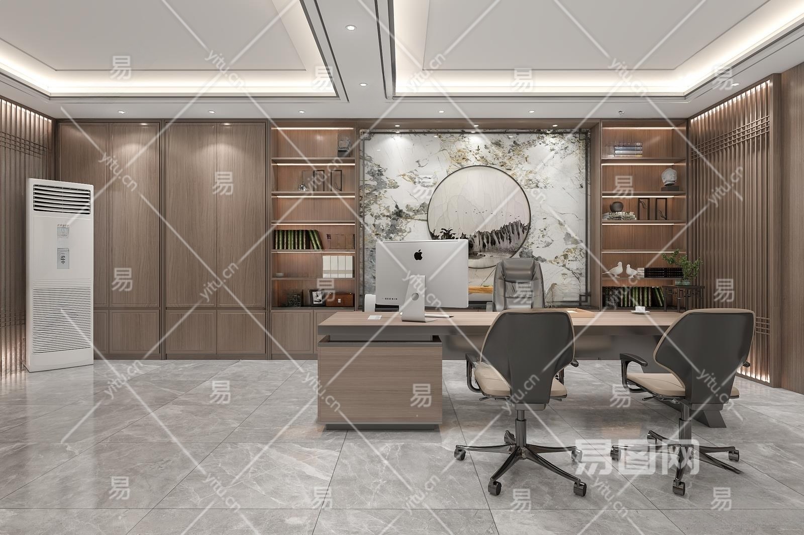 新中式经理办公室3D模型下载