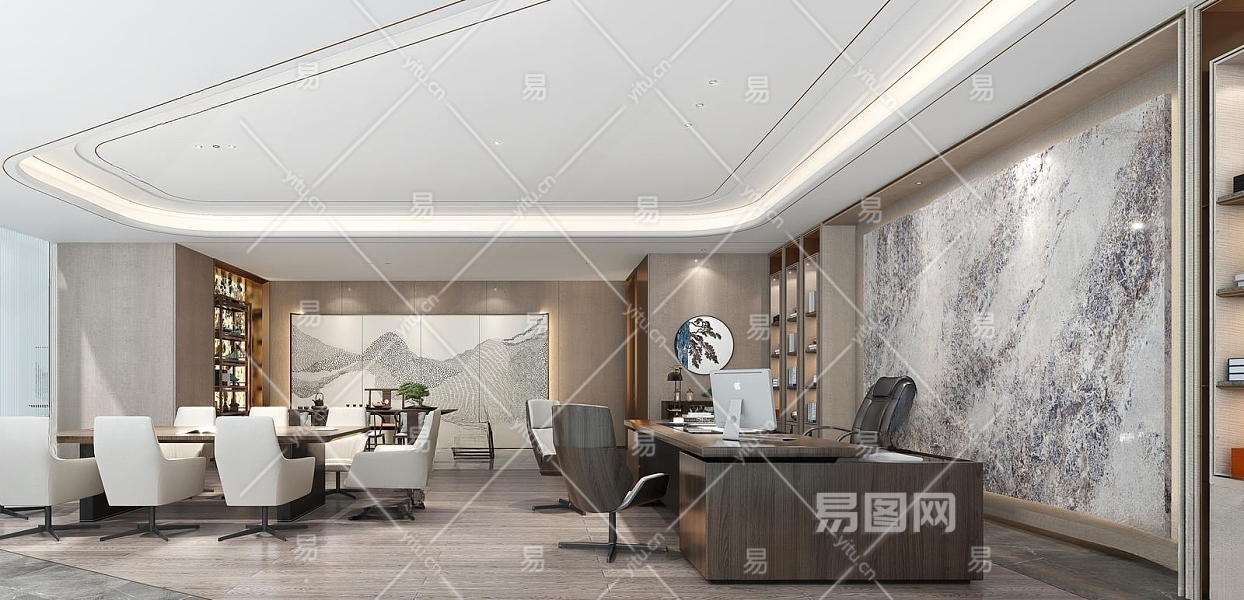 新中式办公室3D模型下载