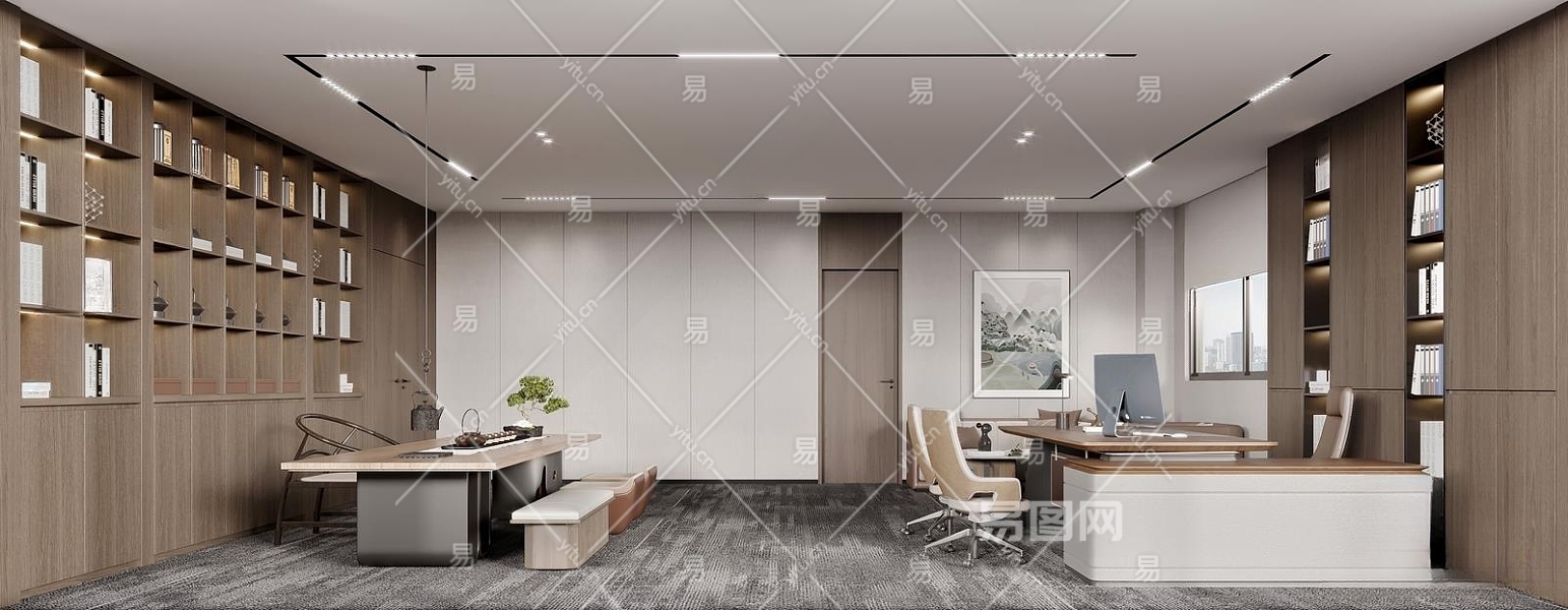新中式经理办公室3D模型下载