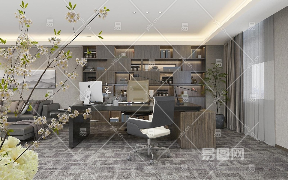新中式经理办公室3D模型下载