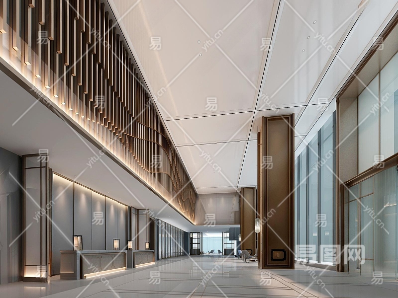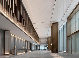 新中式办公大堂3D模型下载