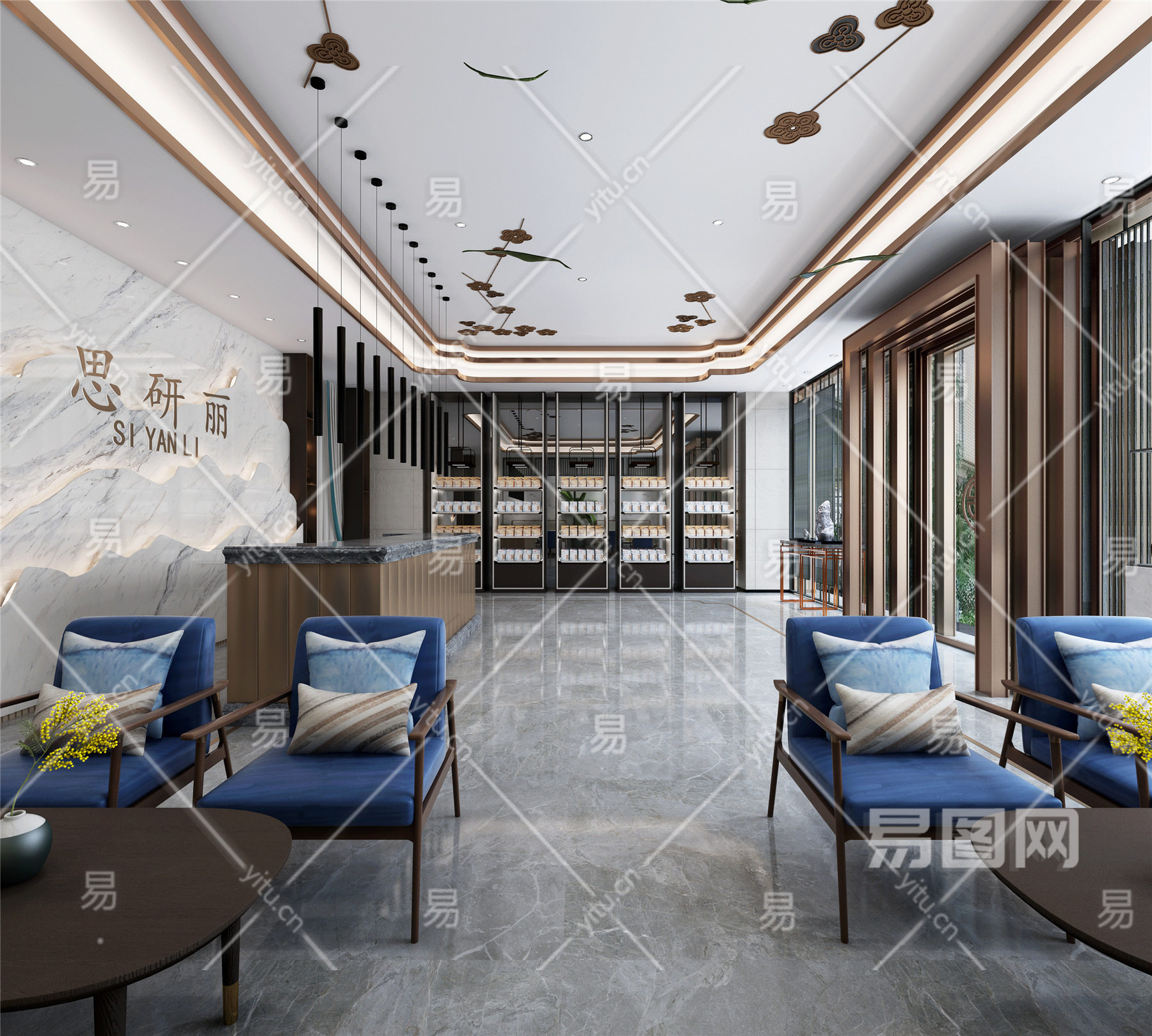 当前的位置:首页 > 3D模型 > 办公空间 > 大堂前台 > 新中式美容美甲美发 美容院前台