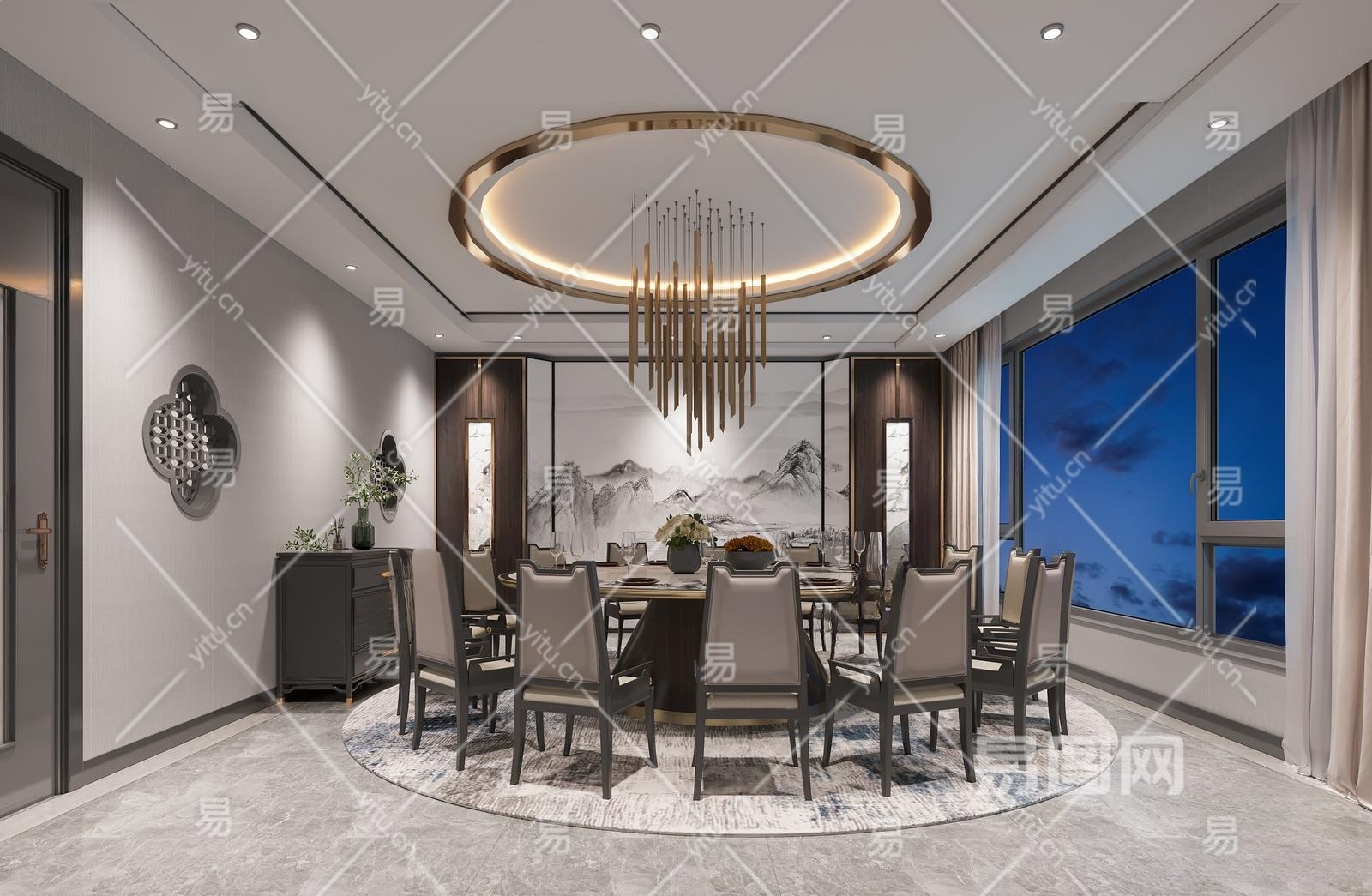 新中式餐厅包间3D模型下载