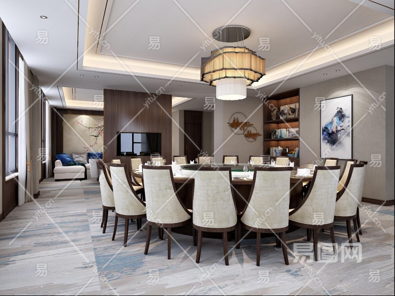 新中式餐厅包间3D模型下载