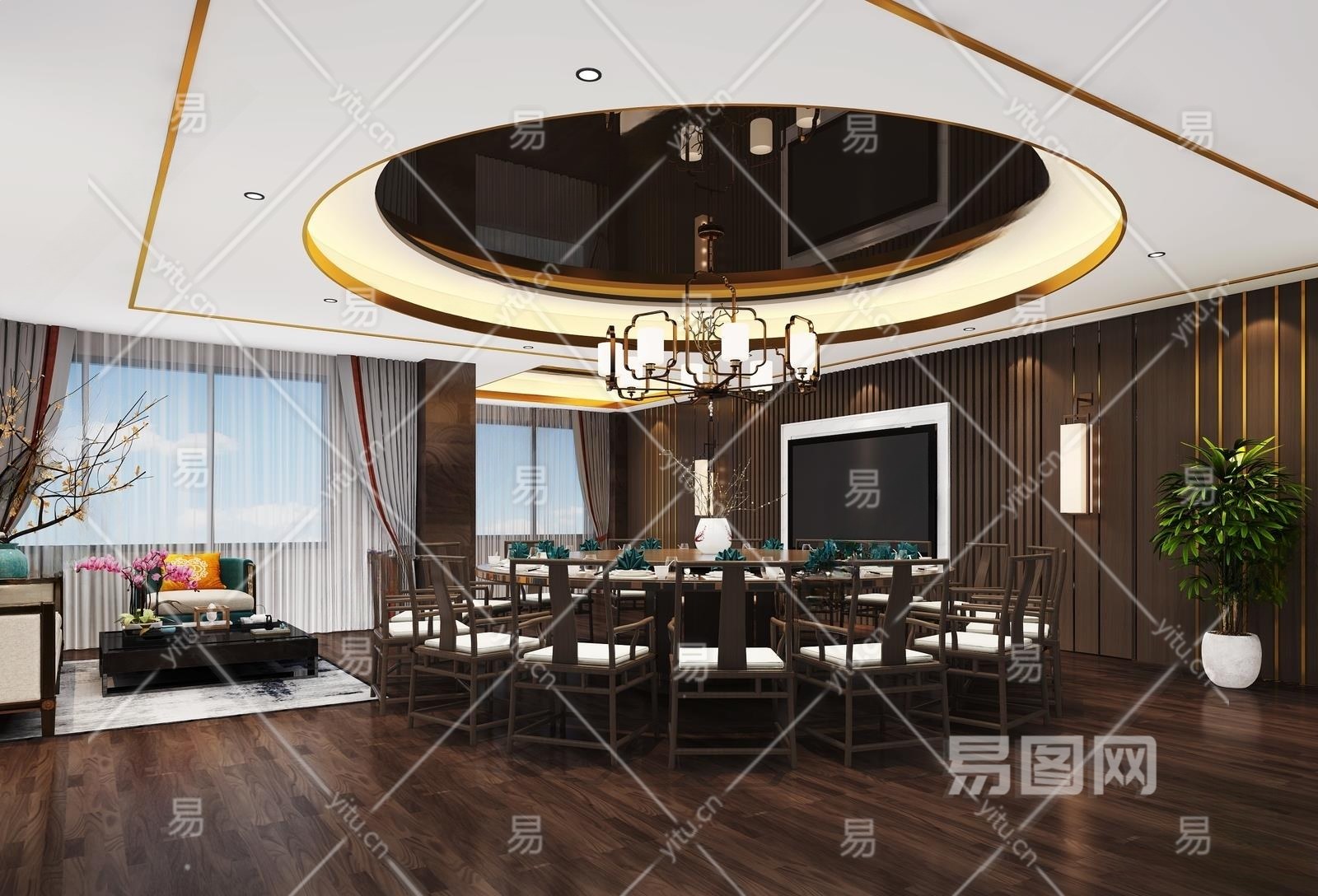 新中式餐厅包厢3D模型下载