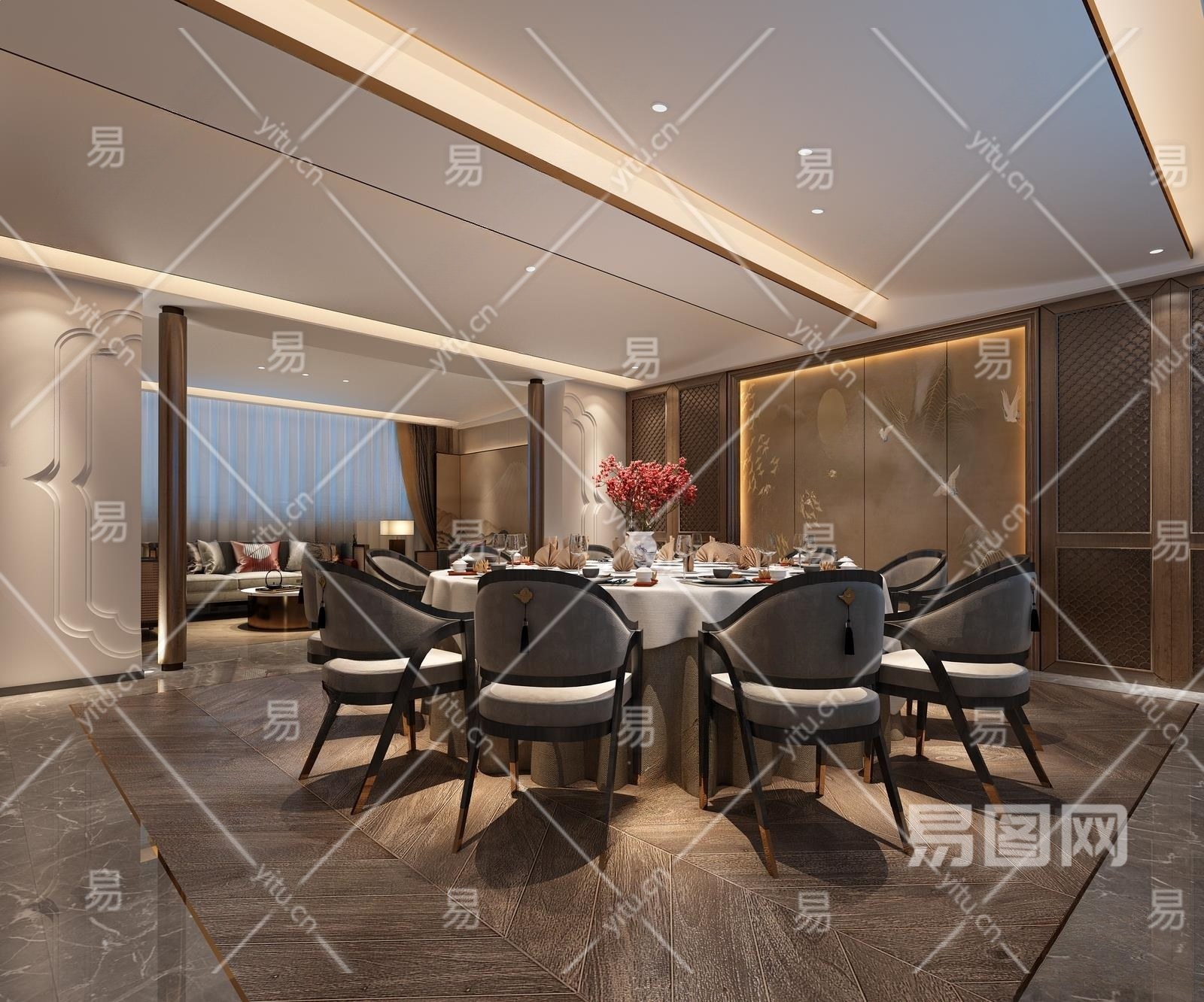新中式餐厅包间3D模型下载