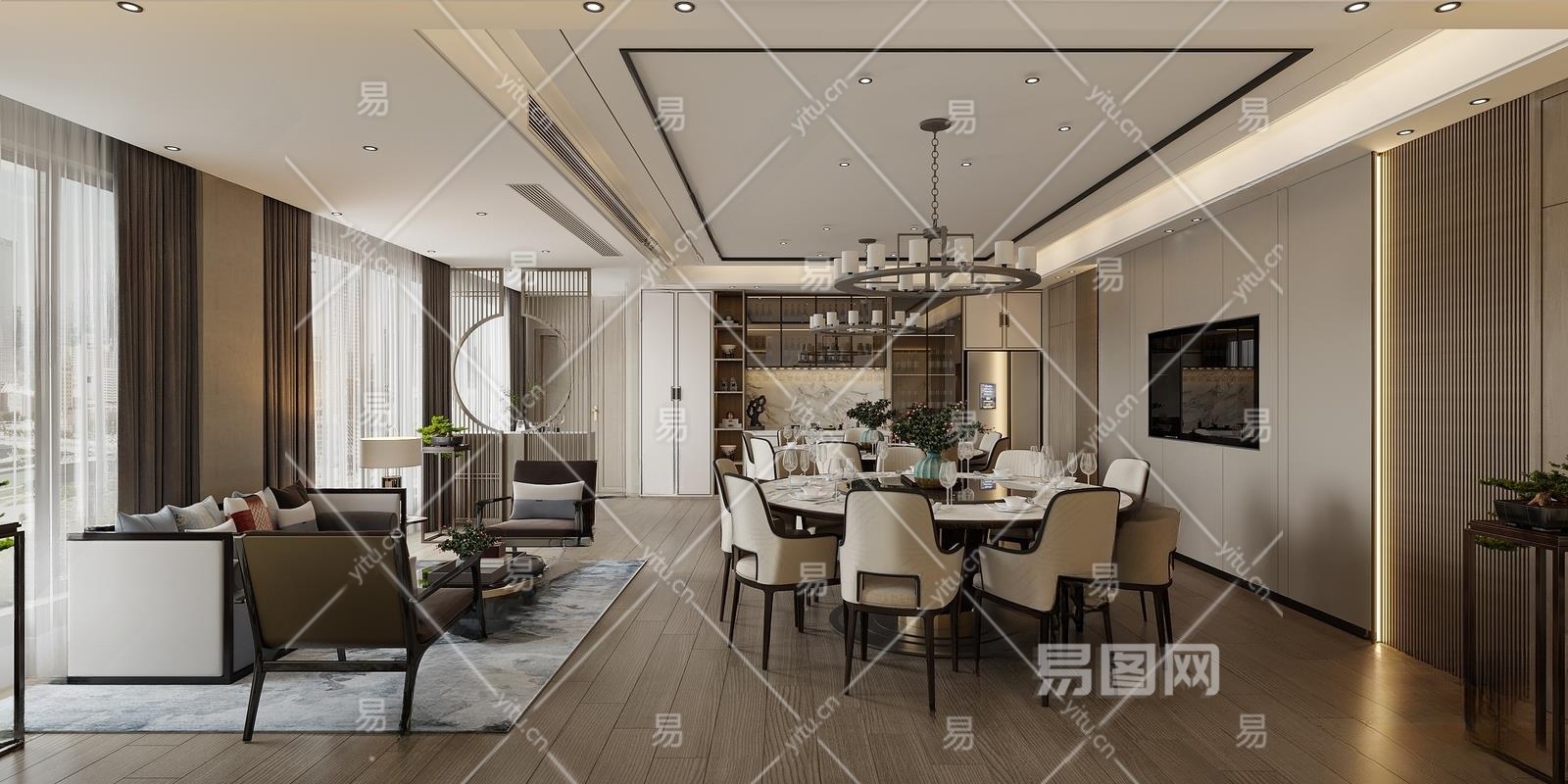 新中式大包厢3D模型下载