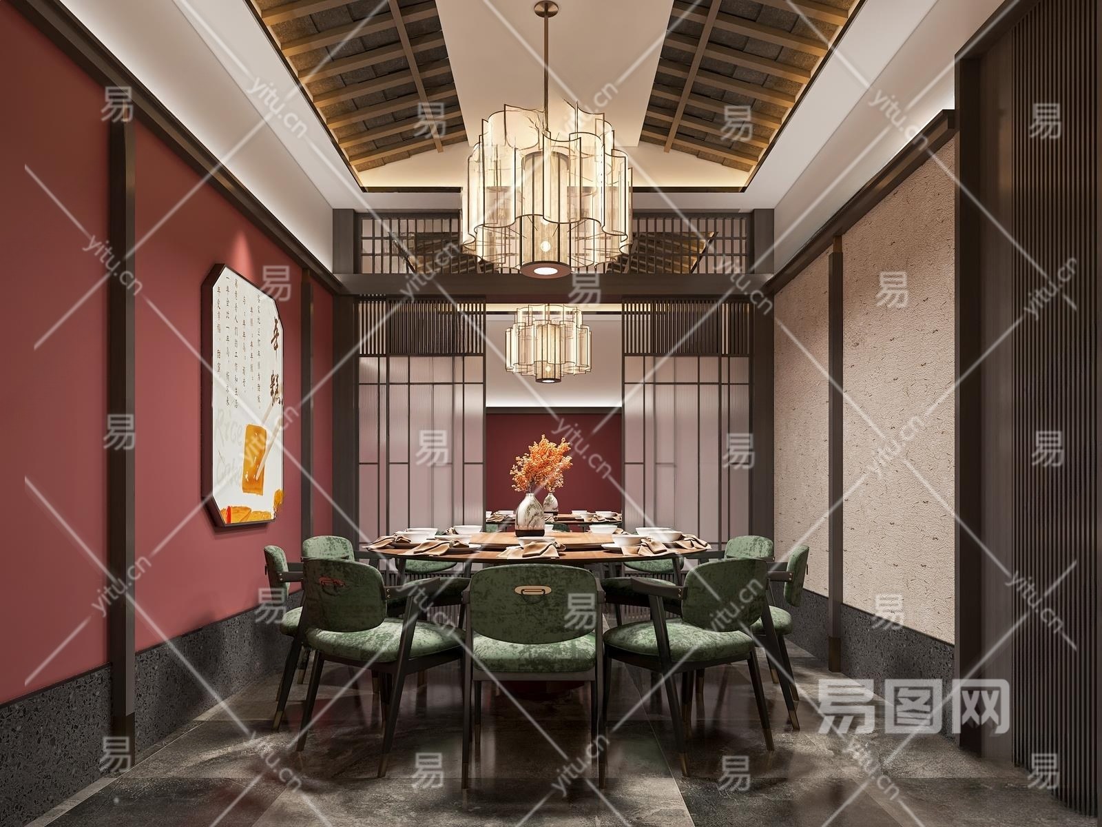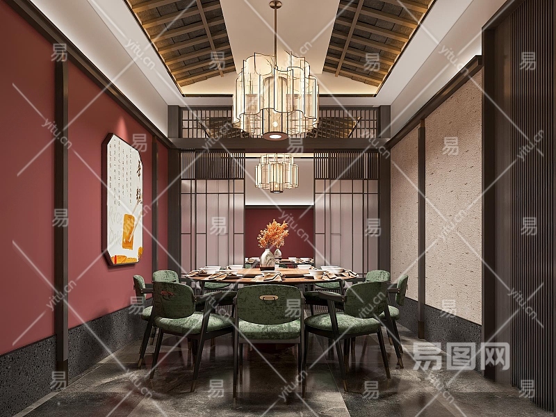 新中式餐馆包厢3D模型下载