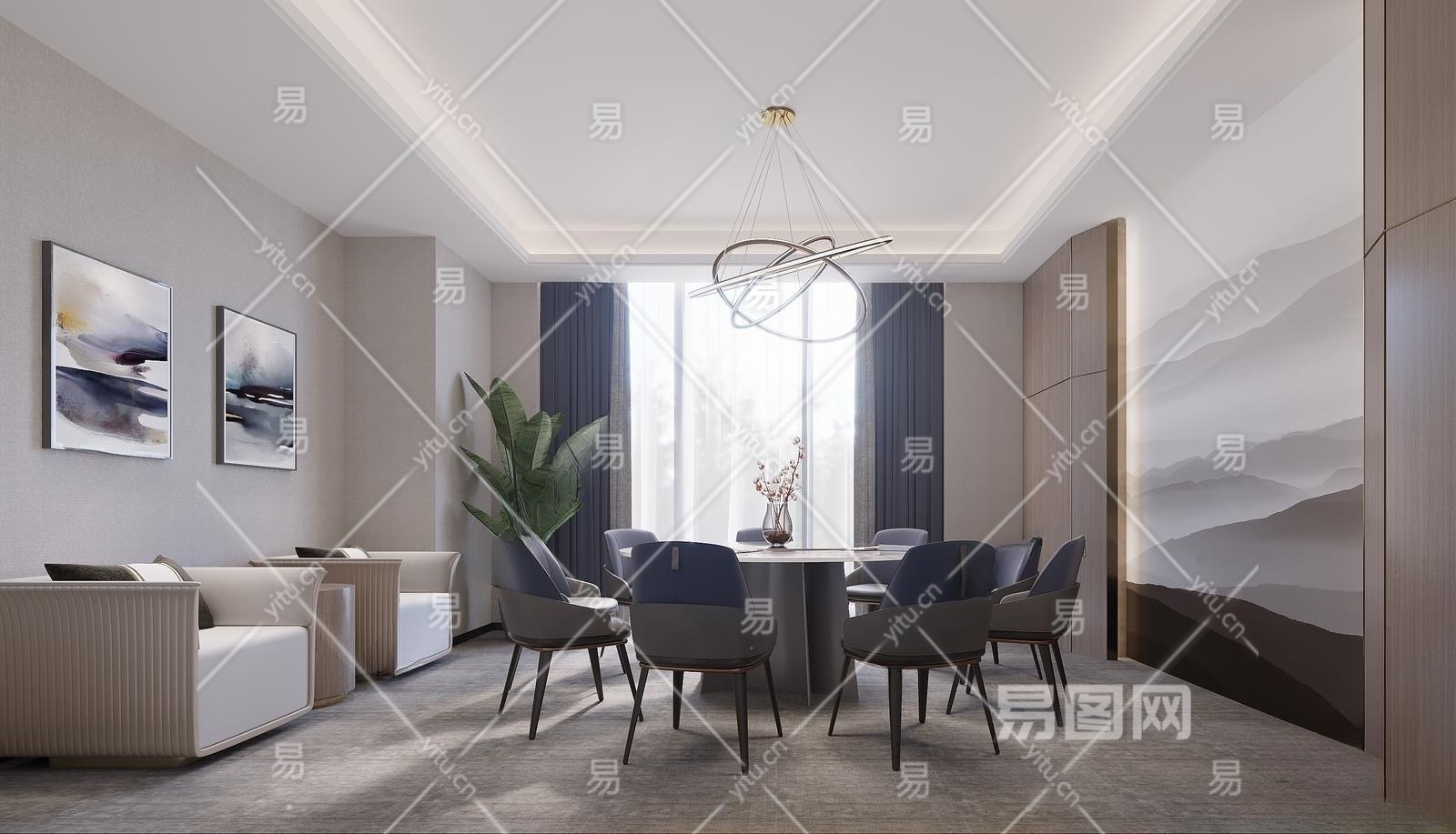 新中式餐厅包间3D模型下载