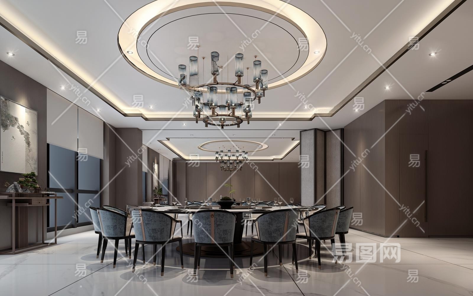 新中式餐厅包间3D模型下载
