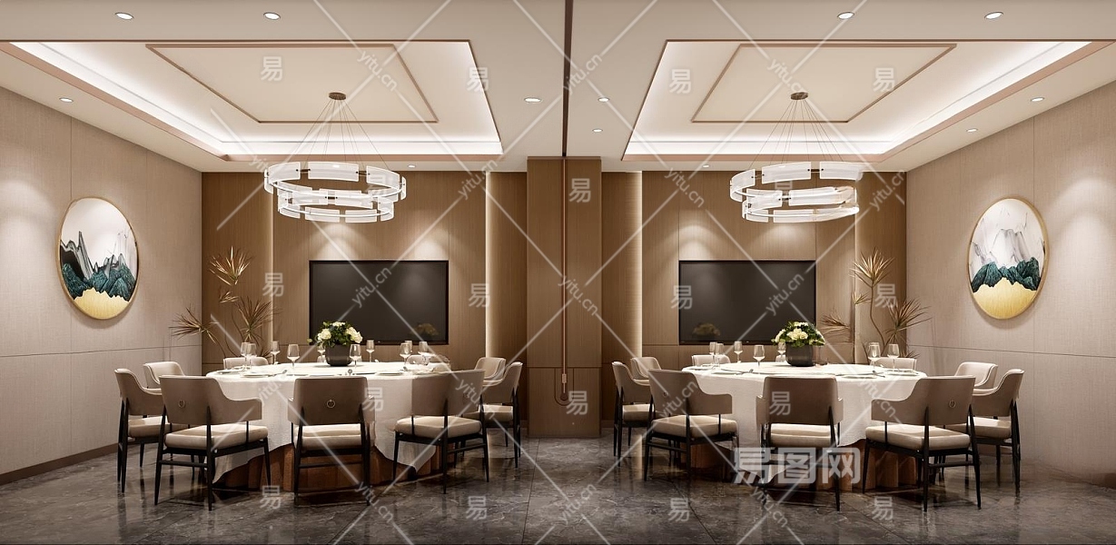 新中式酒店餐厅包间3D模型下载