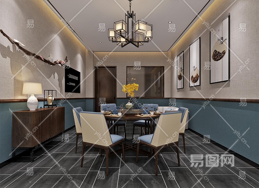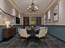 新中式茶餐厅包间3D模型下载