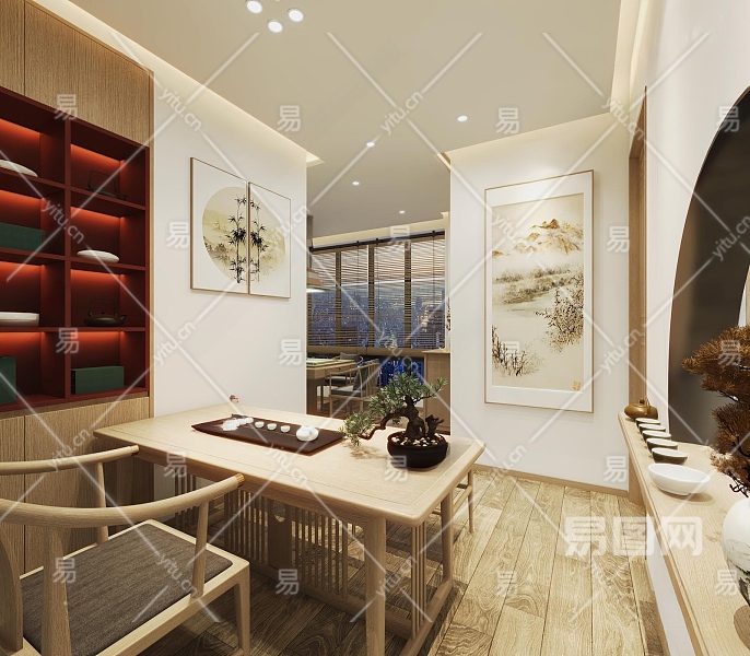 新中式茶室3D模型下载