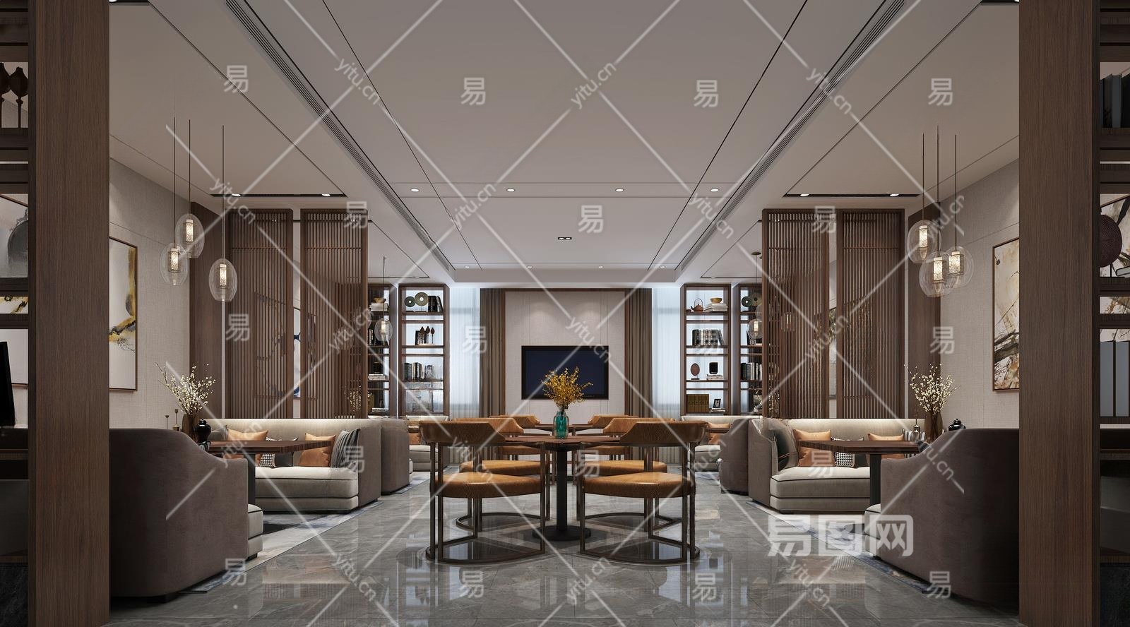 现代中餐厅3D模型下载