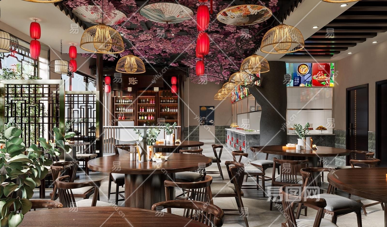新中式中餐厅3D模型下载
