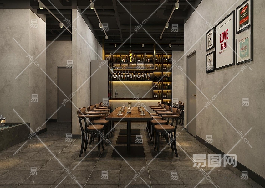 工业风咖啡厅3D模型下载