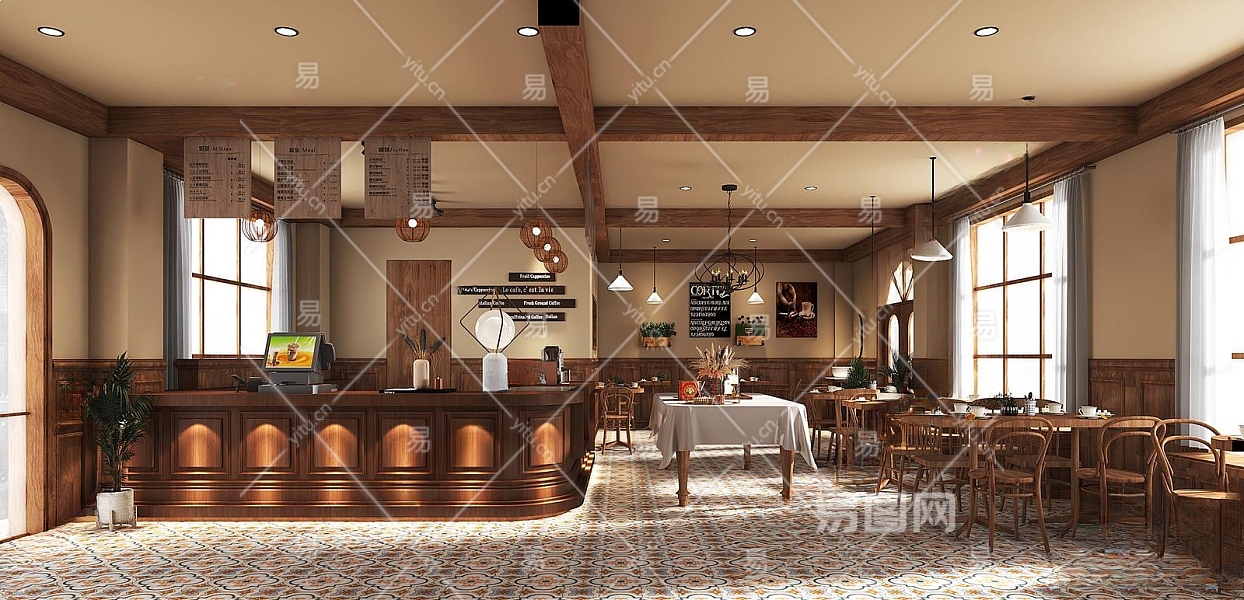 美式咖啡厅3D模型下载