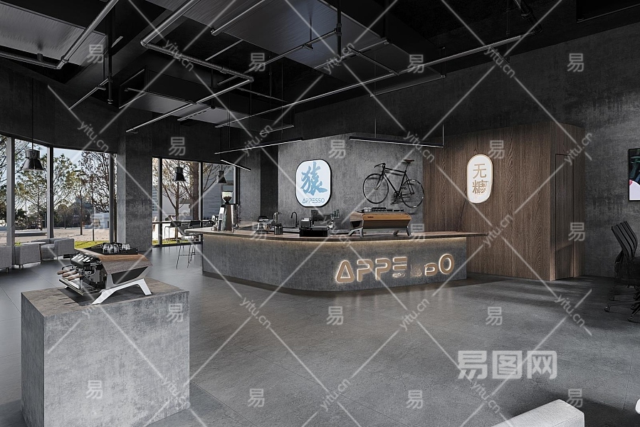 工业风咖啡厅3D模型下载