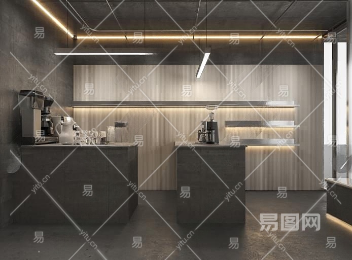 工业风咖啡厅3D模型下载