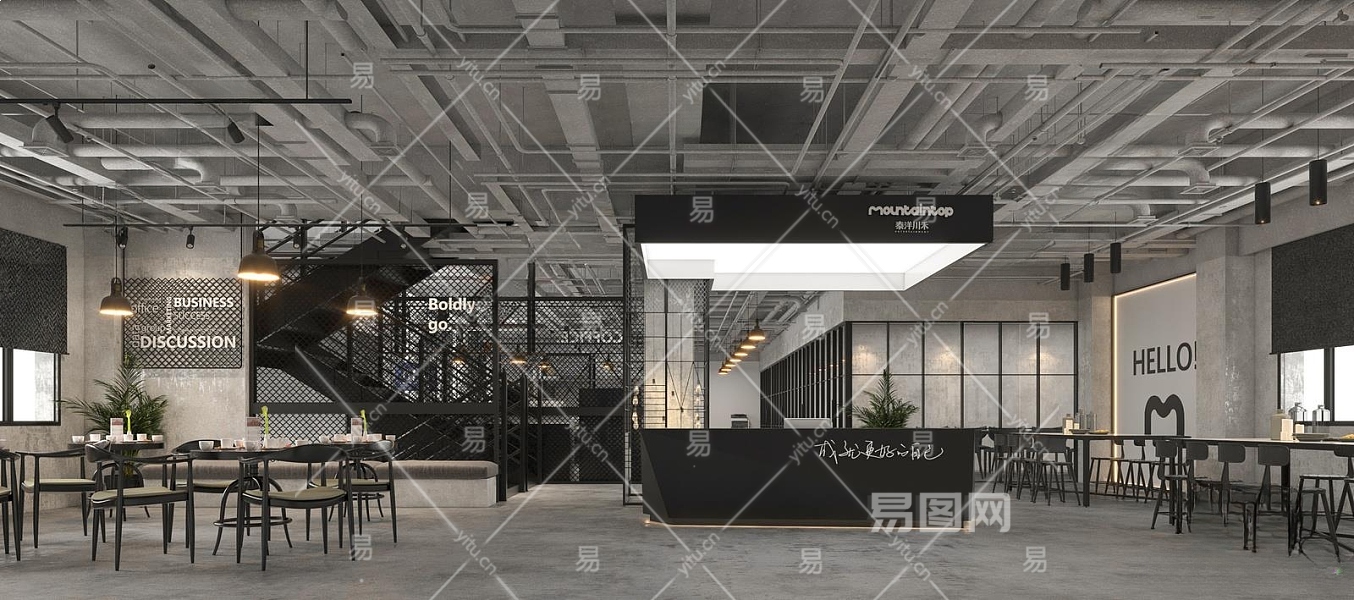 工业风咖啡厅3D模型下载