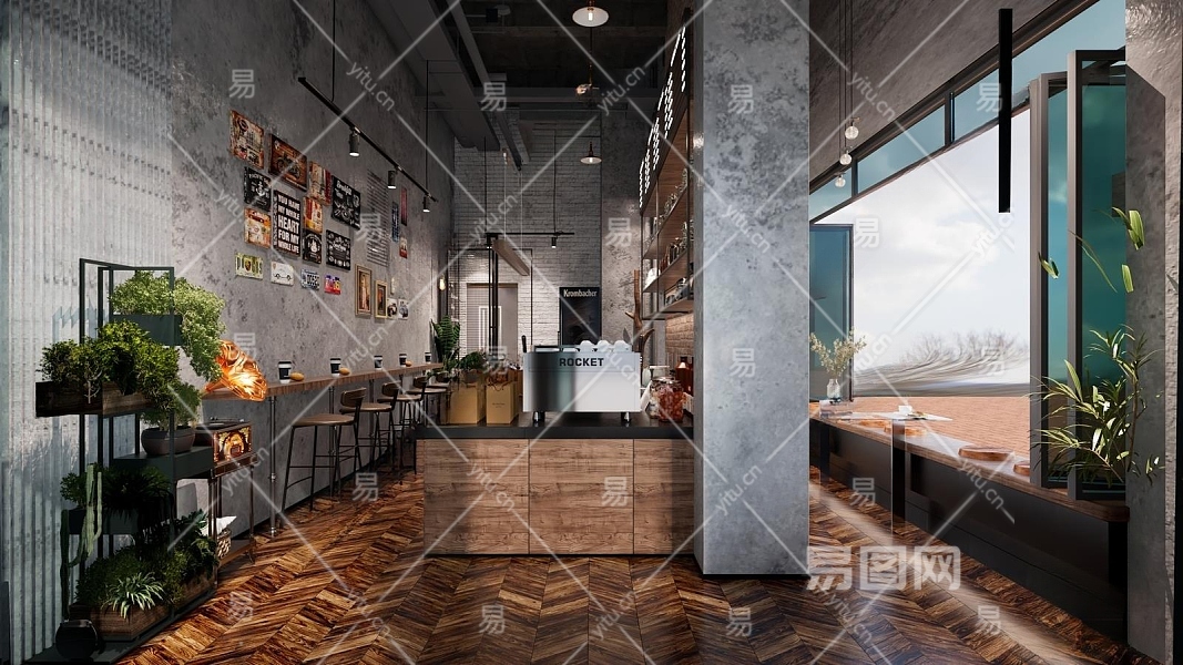 工业风咖啡厅3D模型下载