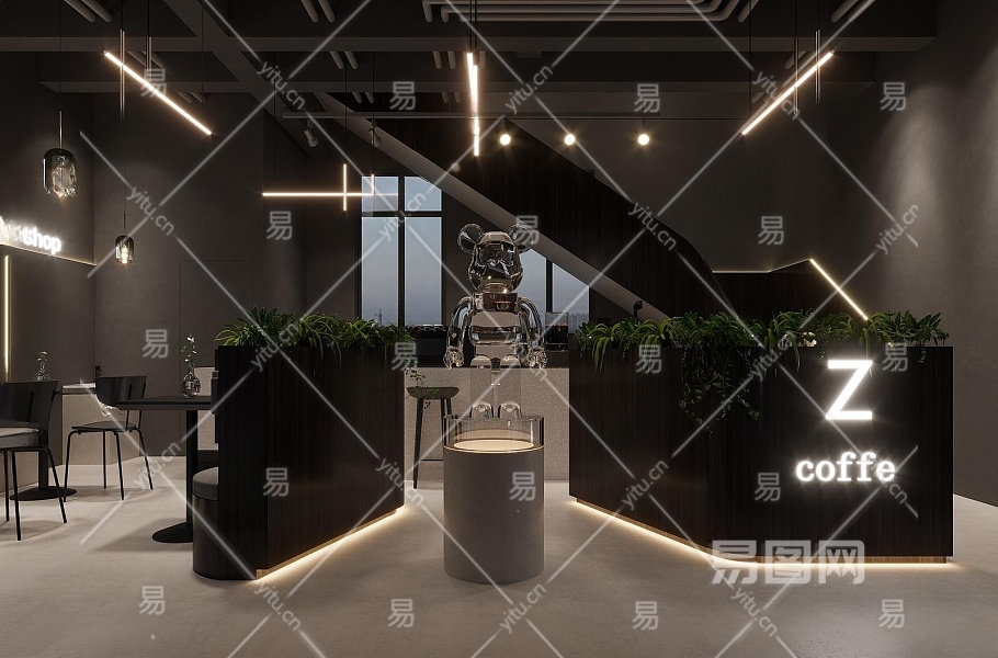 工业风咖啡厅3D模型下载