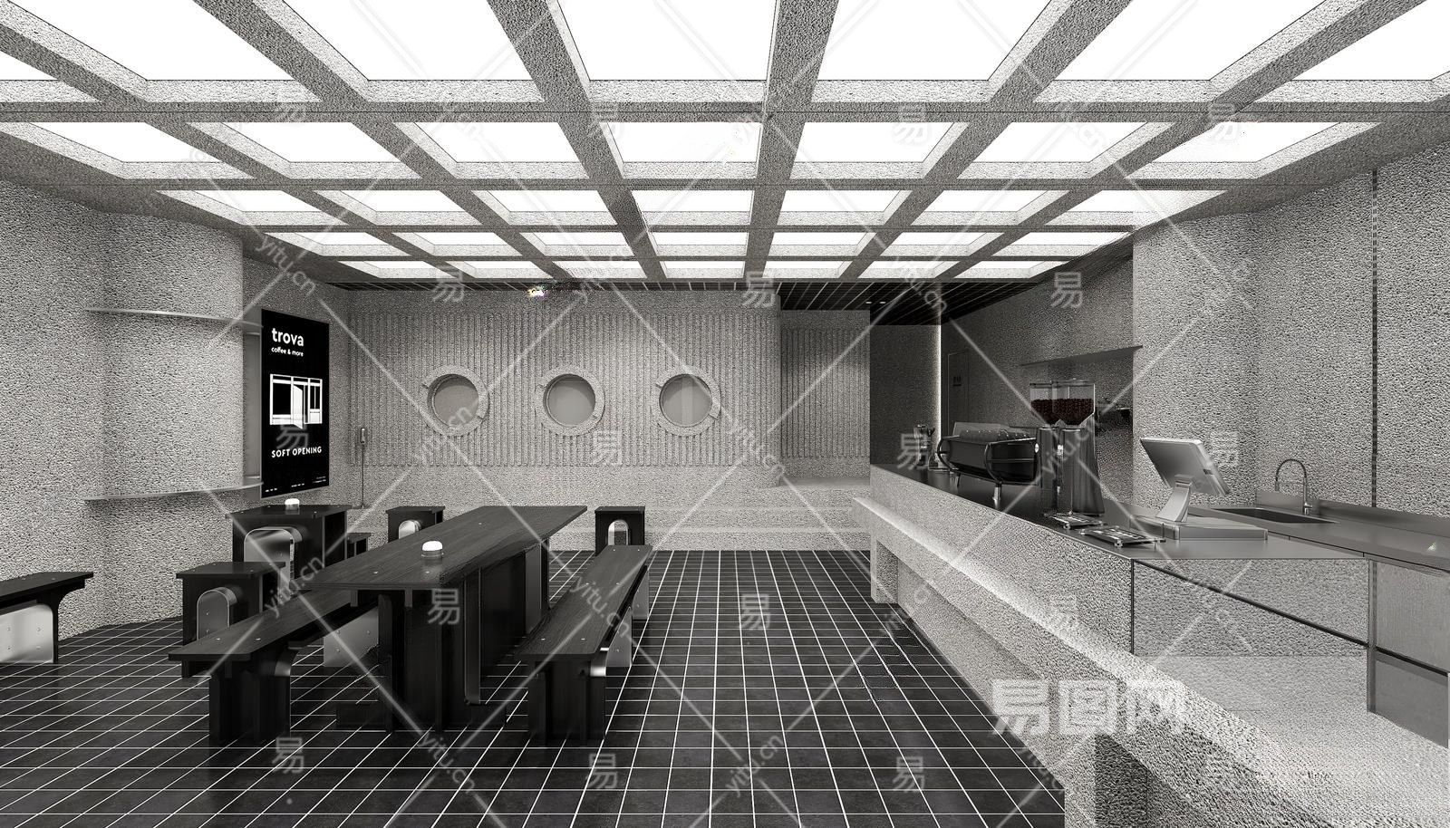 现代咖啡厅3D模型下载