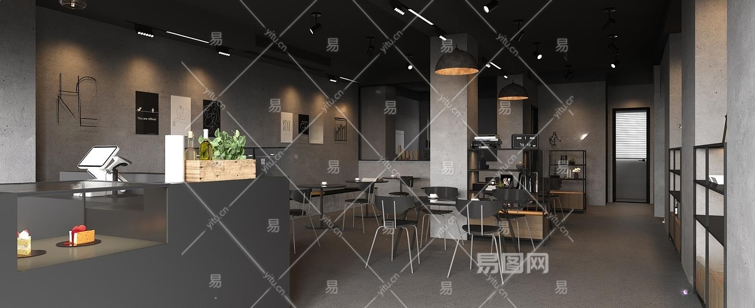 工业风咖啡厅3D模型下载