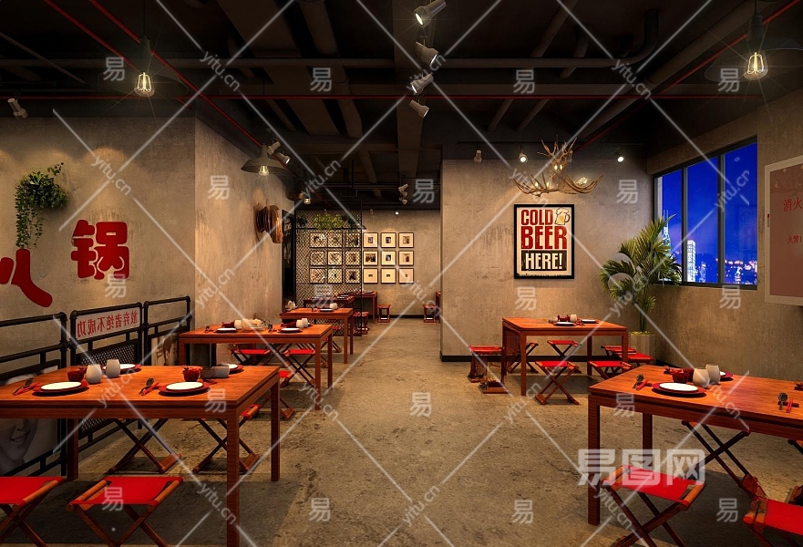 工业风火锅店3D模型下载